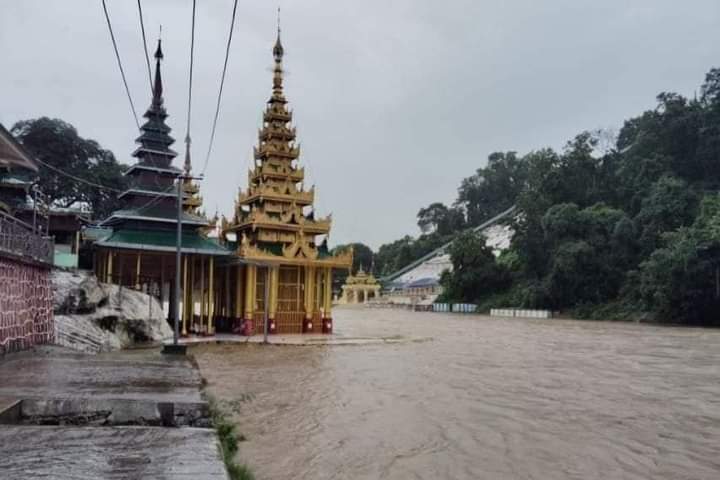 မိုးအဆက်မပြတ်ရွာသွန်းကြောင့် ရွှေစက်တော်ဘုရား ရင်ပြင်တော်အထိ ရေများဝင်ရာက်
