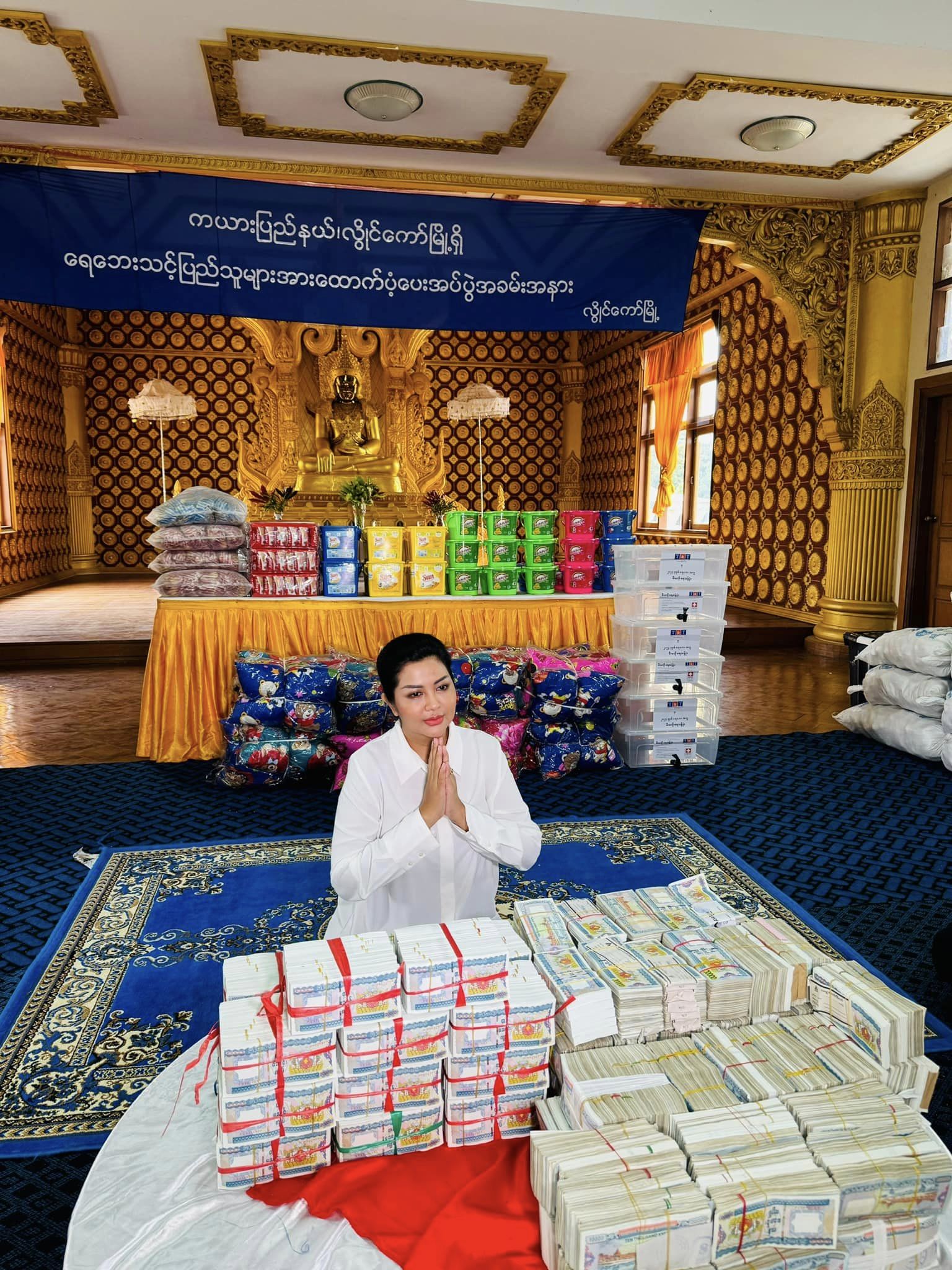 ကယားပြည်နယ်၊လွိင်ကော်မြို ရေဘေးသင့်ပြည်သူများအတွက် တစ်အိမ်ထောင်လျှင် ငွေကျပ်၁၀သိန်း နှင့် အိမ်အသုံး အဆောင် ပစ္စည်းများ ကို ခိုင်နှင်းဝေ က စက်တင်ဘာလ ၂၅ရက်နေ့ က သွားရောက်လှူဒါန်းခဲ့ပါတယ်။