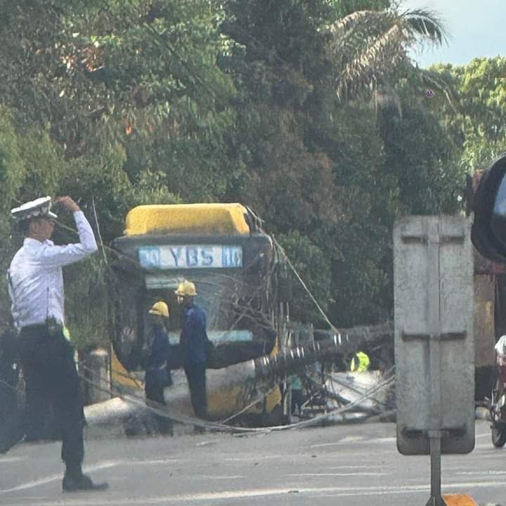 ကမ္ဘာအေးဘုရားလမ်းပေါ်က ဓာတ်တိုင်တွေပြိုလဲကျပြီး ခရီးသည်တင်ကားနဲ့ အိမ်စီးကားအချို့ထိခိုက်