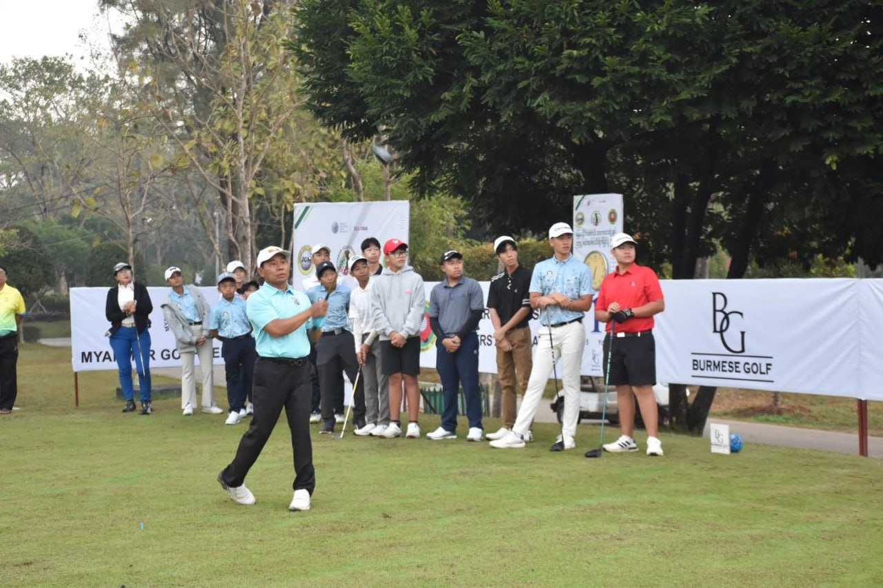 မြန်မာနိုင်ငံဂေါက်သီးအားကစားအဖွဲချုပ် ဥက္ကဋ္ဌ ဦးကိုကိုအေး၊ မြန်မာနိုင်ငံဂေါက်သီးအားကစားအဖွဲချုပ် တွဲဖက်အထွေထွေအတွင်းရေးမှူးနှင့် Junior Golf Myanmar (JGM) ဥက္ကဋ္ဌ ဦးမြင့်အောင်၊ မြန်မာနိုင်ငံဂေါက်သီးအားကစားအဖွဲချုပ် တွဲဖက်အထွေထွေအတွင်းရေးမှူး ဦးကျော်ကိုကိုချစ်နှင့် ဦးမြင့်သောင်း၊ မြန်မာနိုင်ငံဂေါက်သီးအားကစားအဖွဲချုပ် ဗဟိုအလုပ်အမှုဆောင်နှင့် Junior Golf Myanmar (JGM) ဒုတိယဥက္ကဋ္ဌ ဦးအောင်ကိုဇော်၊ မြန်မာနိုင်ငံဂေါက်သီးအားကစားအဖွဲချုပ် ဗဟိုအလုပ်အမှုဆောင် ဦးတင်မောင်မောင်ဝင်း၊ Junior Golf Myanmar (JGM) အတွင်းရေးမှူး ဦးကျော်မင်းမင်းလတ်တိုက အလှည့်ကျ ဂေါက်သီးရိုက်၍ဖွင့်လှစ်ပေးပြီး ပထမနေ့ ၁၈ ကျင်းပြိုင်ပွဲကို စတင်ယှဉ်ပြိုင်ခဲ့ကြပါတယ်။