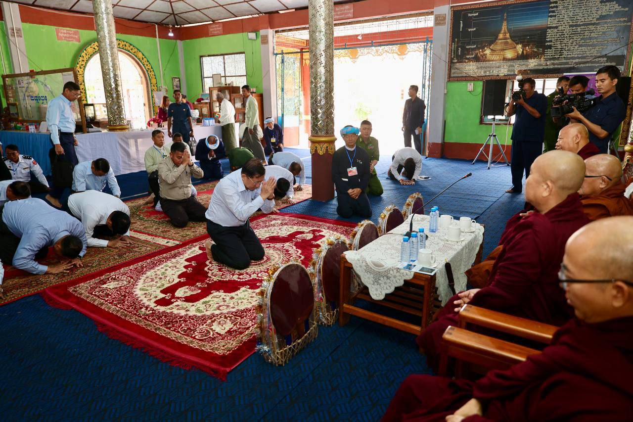 ထိုသို့ ဟိုခိုကျောင်းဆရာတော်အား ဖူးမြှော်ကြည်ညိုရာ ဘုရားကြီးပရိဝုဏ်အတွင်းရှိ ဘုရားစေတီများထိခိုက်ပျက်စီးခဲ့မှုအားပြန်လည်ပြင်ဆင်ရာတွင် မူလပုံစံမပျက်စေဘဲ ရေရှည်တည်တံ့ခိုင်မြဲရေးအတွက် စနစ်တကျကျွမ်းကျင်ပညာရှင်များနှင့်မွန်းမံပြုပြင်သွားမည်ဟု ရှင်းလင်းလျှောက်ထားခဲ့သည်။ ထို့နောက် နစက ဥက္ကဋ္ဌက ဆရာတော်ကြီးများထံမှဩဝါဒနာယူပြီး လှူဖွယ်ပစ္စည်းများဆက်ကပ်လှူဒါန်း၍ ဘုရားကြီးဘက်စုံပြုပြင်မွမ်းမံရန် အလှူတော်ငွေများကိုပေးအပ်လှူဒါန်းခဲ့သည်။