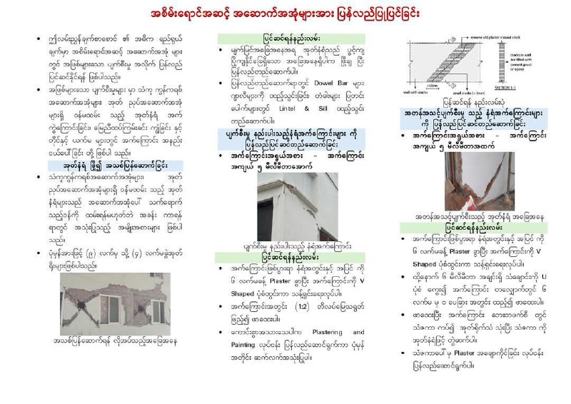 ငလျင်ကြောင့် ပျက်စီးသွားသည့် အဆောက်အအုံများ ပြန်လည်ပြင်ဆင်ရန် လမ်းညွှန်ချက်စာစောင်များ ဖြန့်ချီ