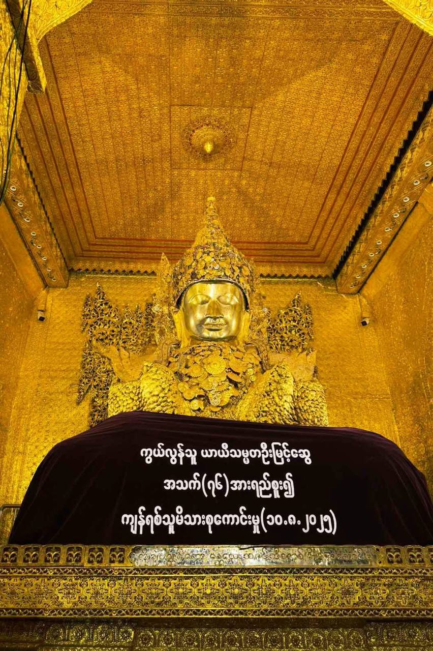 ကွယ်လွန်သူ ယာယီသမ္မတ ဦးမြင့်ဆွေအတွက် ရည်စူးကာ ဘုရားကြီးကို ခြုံထည်ကတ္ထီပါ သင်္ကန်းလှူဒါန်း