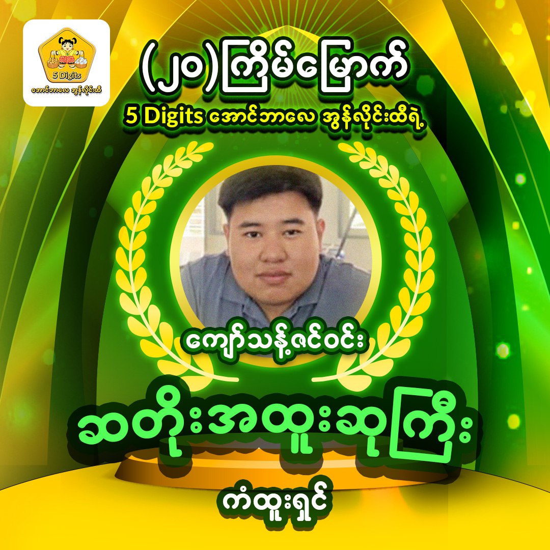 “အိပ်မက်တွေက ဈေးကြီးတယ်” ဆိုတဲ့အတိုင်း “ကံတရားက မျက်နှာသာပေးဦးမှာပါ” ဆိုတဲ့ မျှော်လင့်ချက်နဲ့ ဆက်လက်ကြိုးစားရင်း နောက်ဆုံးမှာတော့ အကြိမ် (၂၀) မြောက် အထူးဆုကြီးဖြစ်တဲ့ ကျပ်သိန်း (၁၅၀၀)၊ အောင်ဘာလေအွန်လိုင်းထီ သမိုင်းတစ်လျှောက်ရဲ့ အကြီးဆုံးထီဆုကြီးကို ဆွတ်ခူးသွားတဲ့ ပထမဆုံး ကံထူးရှင်ဖြစ်လာခဲ့ချိန် သူ့အသက်က (၂၂) နှစ်သာ ရှိပါသေးတယ်. . .