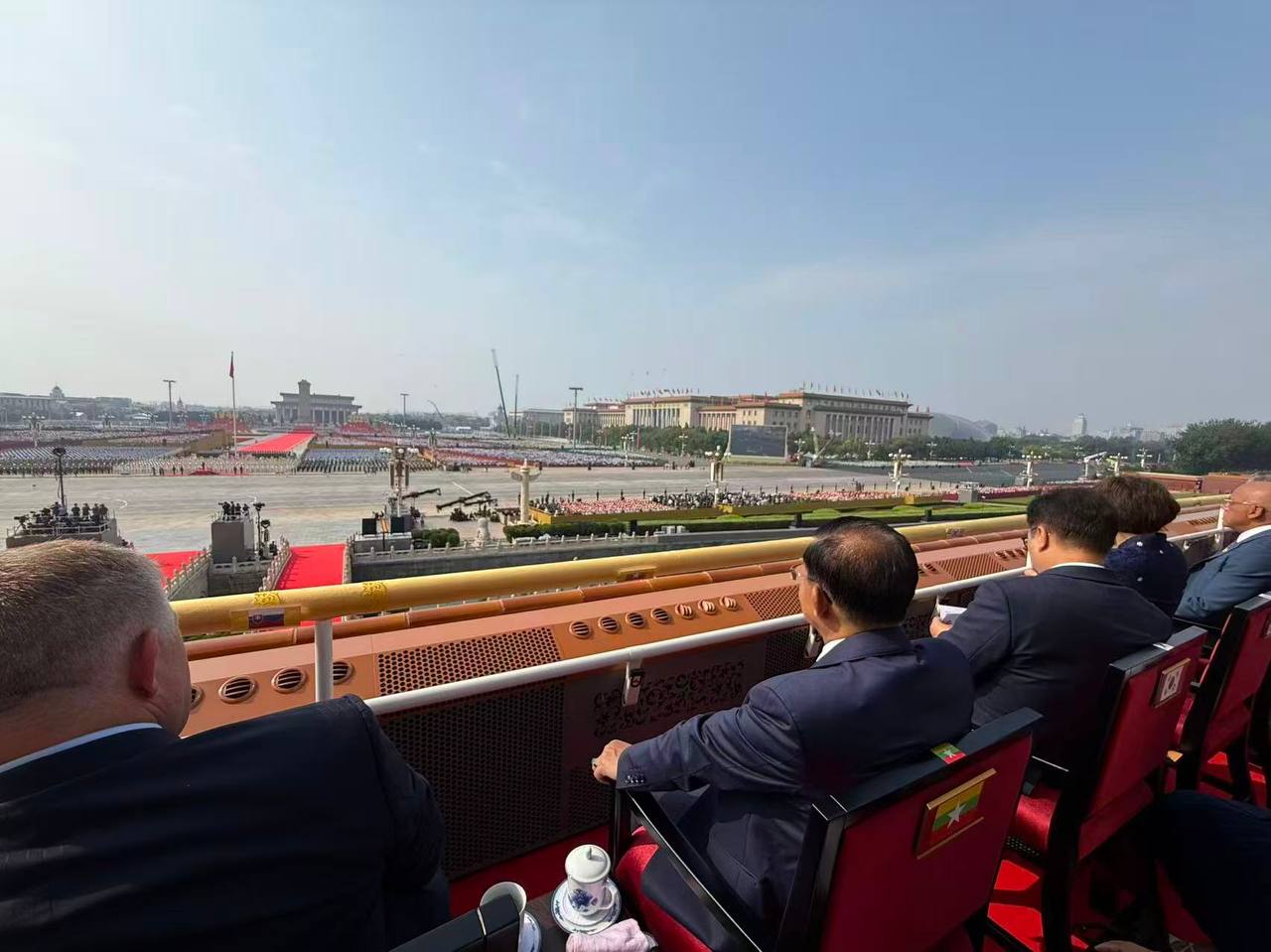 တရုတ်ပြည်သူများ၏ ဂျပန်ခုခံတော်လှန်ရေး စစ်ပွဲနှင့် ကမ္ဘာ့ဖက်ဆစ်ဆန့်ကျင်ရေးစစ်ပွဲ အောင်နိုင်ခြင်းနှစ်(၈၀)ပြည့် အထိမ်းအမှတ် စစ်ရေးပြအခမ်းအနားသို့ တက်ရောက်ရန် ယာယီသမ္မတ ဗိုလ်ချုပ်မှူးကြီးမင်းအောင်လှိုင်သည် စက်တင်ဘာ ၂ ရက် (ယမန်နေ့) နံနက်ပိုင်းက တီယန်ကျင်းမြို့မှ ပေကျင်းမြို့သို့ အမြန်ရထားဖြင့် ထွက်ခွာခဲ့ပြီး ယနေ့ တွင် အဆိုပါ အခမ်းအနားသို့ ကမ္ဘာ့နိုင်ငံ့ခေါင်းဆောင်များနှင့်အတူ တက်ရောက်နေခြင်းဖြစ်သည်။