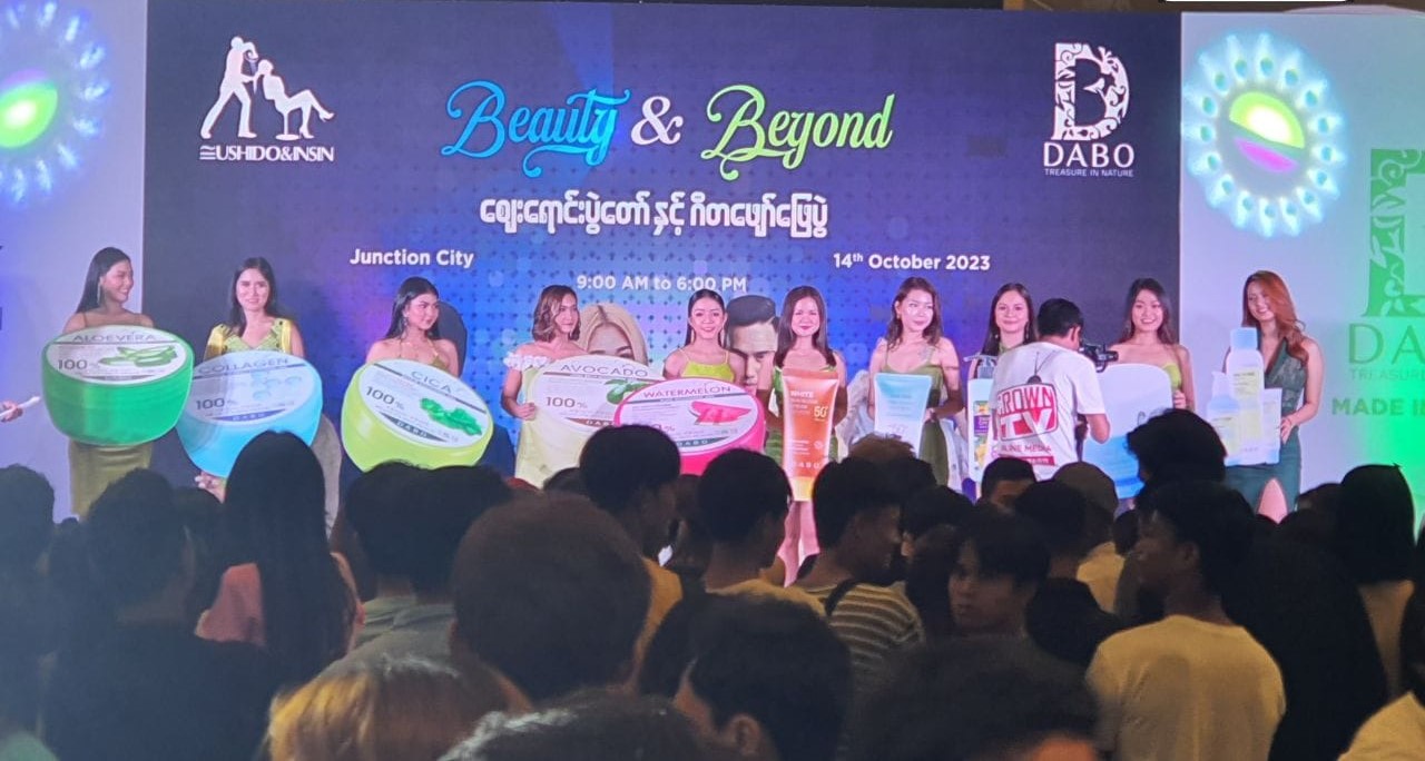 နာမည်ကြီးအဆိုတော်တွေဖြစ်တဲ့ ရဲလေး ၊ ဇွဲပြည့် ၊ ထက်ယံ ၊ ဝေကြီး ၊ ယွန်းမြတ်သူတို့နဲ့အတူ Ushido&Insin က စီစဉ်ခဲ့တဲ့ Beauty & Beyond ဂီတဖျော်ဖြေပွဲနဲ့ဈေးရောင်းပွဲတော်ကို အောက်တိုဘာ ၁၄ ရက် မွန်းလွဲပိုင်းက ရန်ကုန်မြို့ Junction City Promotion Area မှာ ကျင်းပခဲ့ပါတယ်။