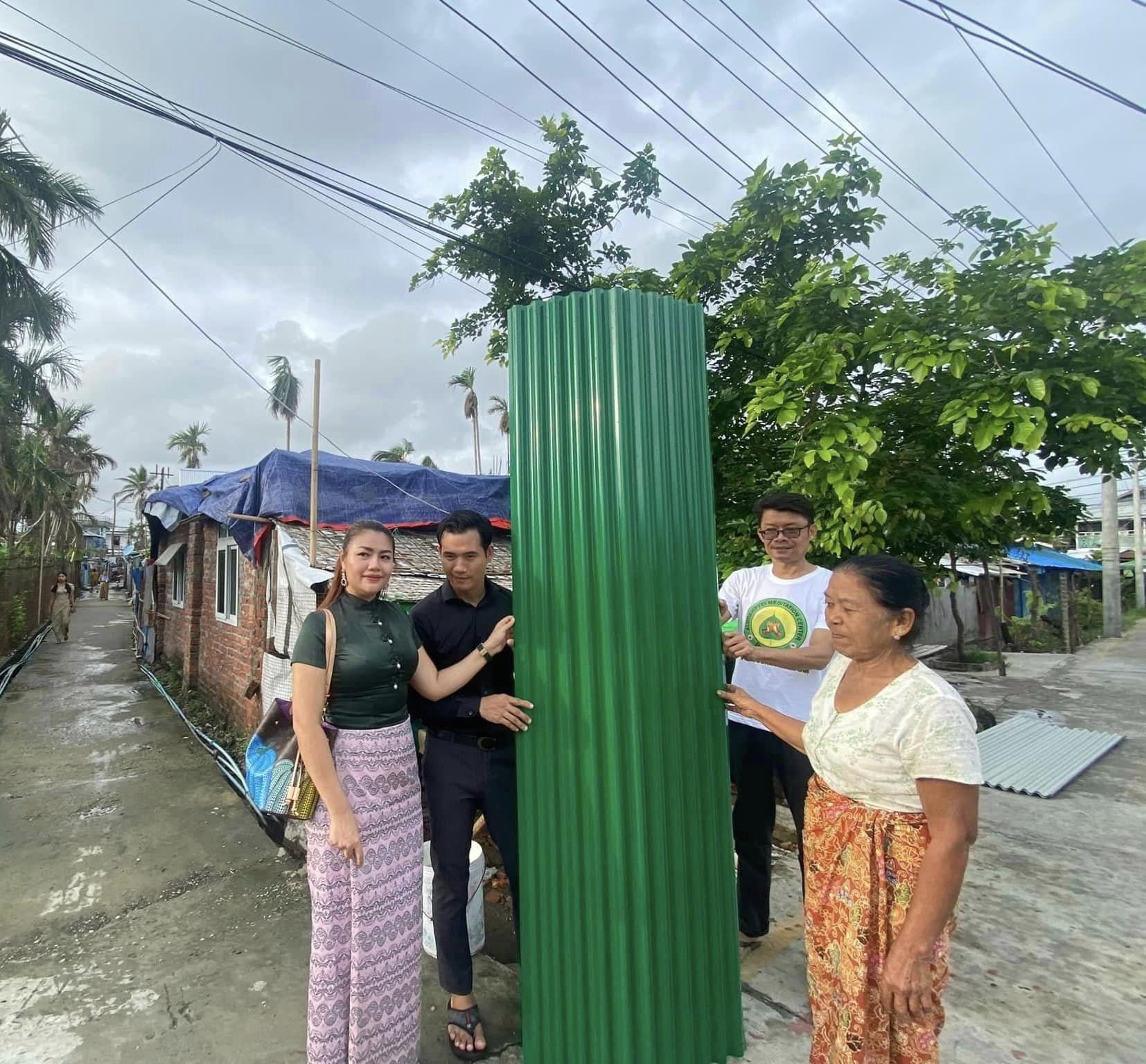 အဆိုတော် သားဂန်းနဲ့ ဘေဘီမောင် တို့မိသားစုက အိမ်ခေါင်မိုးသွပ်ပြားများပေးအပ်လှူဒါန်း-