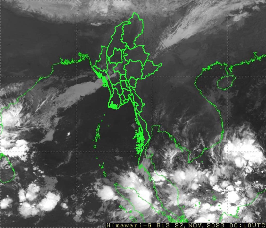 ဘင်္ဂလားပင်လယ်အော်အခြေအနေ။ ကပ္ပလီပင်လယ်ပြင်မြောက်ပိုင်းနှင့် ဘင်္ဂလားပင်လယ်အော်အရှေ့တောင်ပိုင်းတို့တွင် တိမ်အနည်းငယ် ဖြစ်ထွန်းနေပြီး၊ ကပ္ပလီပင်လယ်ပြင်တောင်ပိုင်းနှင့် ကျန်ဘင်္ဂလားပင်လယ်အော်တို့ တွင် တိမ်အသင့်အတင့် မှ တိမ်ထူထပ်နေပါသည်။