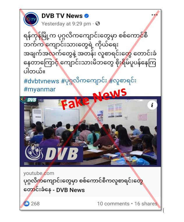 ရန်ကုန်မြို့မှ ပုဂ္ဂလိကကျောင်းများတွင် နိုင်ငံတော်အစိုးရက ကျောင်းသားများ၏ ကိုယ်ရေး အချက်အလက်များနှင့် အတန်းလူစာရင်းများ တောင်းခံနေမှုကြောင့် ကျောင်းသားမိဘများ စိုးရိမ်ပူပန်နေကြောင်း ကောလာဟလသတင်းများကို သတင်းတု/သတင်းလိမ် မီဒီယာများမှ လုပ်ကြံဖန်တီးထုတ်လွှင့်လျက်ရှိကြောင်း သိရှိရပါတယ်။
