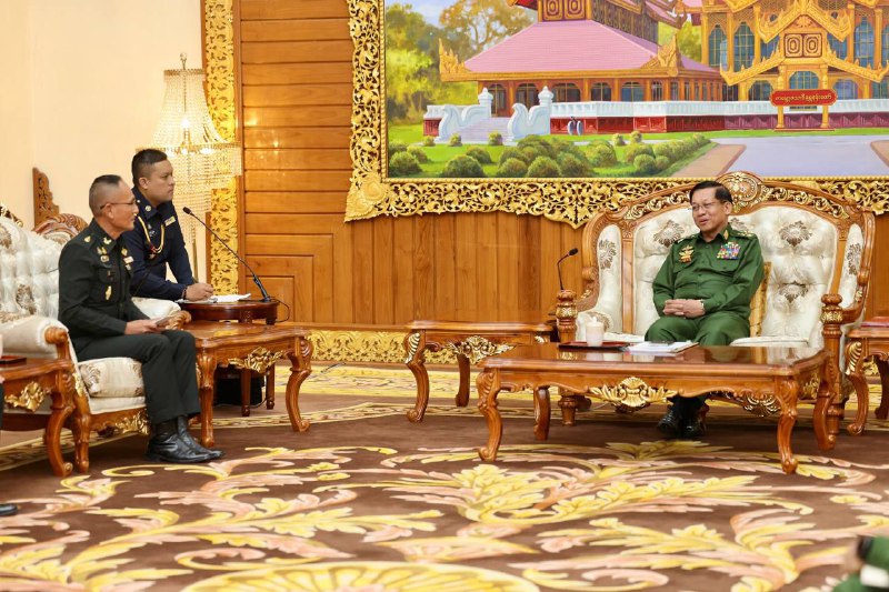နိုင်ငံတော်စီမံအုပ်ချုပ်ရေးကောင်စီဥက္ကဋ္ဌ တပ်မတော်ကာကွယ်ရေးဦးစီးချုပ် ဗိုလ်ချုပ်မှူးကြီး မင်းအောင်လှိုင်သည် ထိုင်းဘုရင့်တပ်မတော်၊ ပူးပေါင်းစစ်ဆင်ရေး ညွှန်ကြားရေးမှူး Lieutenant General Jakkapong Janpengpen ဦးဆောင်သည့် ကိုယ်စားလှယ်အဖွဲ့အား ယမန်နေ့နံနက်ပိုင်းတွင် နေပြည်တော်ရှိ ဘုရင့်နောင်ရိပ်သာ ဧည့်ခန်းမဆောင်၌ လက်ခံတွေ့ဆုံကြောင်း သိရှိရပါတယ်။