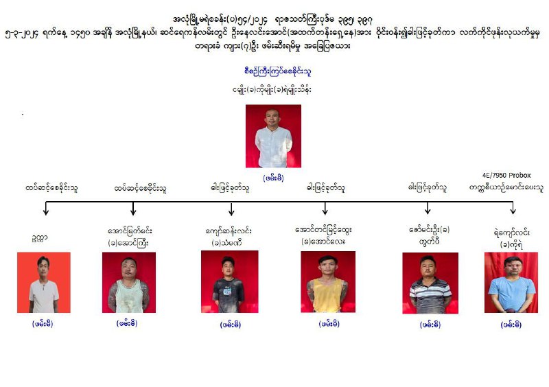 အလုံမြို့နယ်၌ အထက်တန်းရှေ့နေ (၁) ဦးကို ဝိုင်းဝန်း ရိုက်နှက် ခုတ်ထစ်လုယူခံရမှုနှင့် ပတ်သက်၍ တရားခံ ကျား(၇)ဦးနှင့် အခြားအမှုမှ ဆက်စပ်တရားခံ (၃) ဦးတို့အား ဖမ်းဆီးရမိမှု