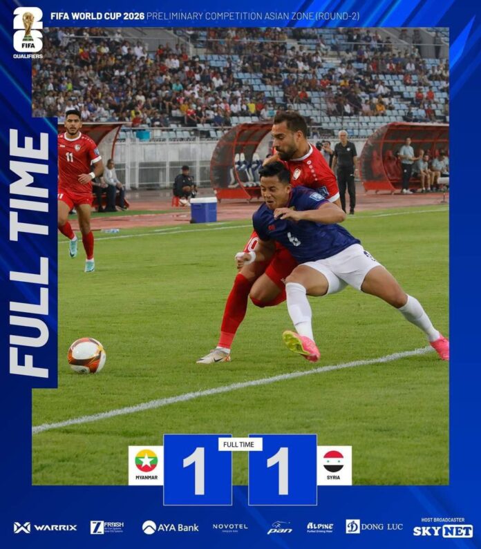 မြန်မာနှင့် ဆီးရီးယား ကမ္ဘာ့ဖလားခြေစစ်ပွဲ တစ်ဘက်တစ်ဂိုး ဖြင့် သရေကျ