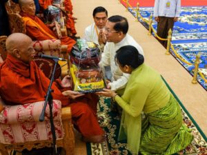 ၁။ ပရိတ်ရွတ်ဖတ်ပူဇော်ခြင်းနဲ့ သံဃာတော်များအား နေ့ဆွမ်းဆက်ကပ်ခြင်းအလှူကို ဖခင်နေတိုးနဲ့ သားဂုဏ်ရှိန်တိုးပြုလုပ်ခဲ့