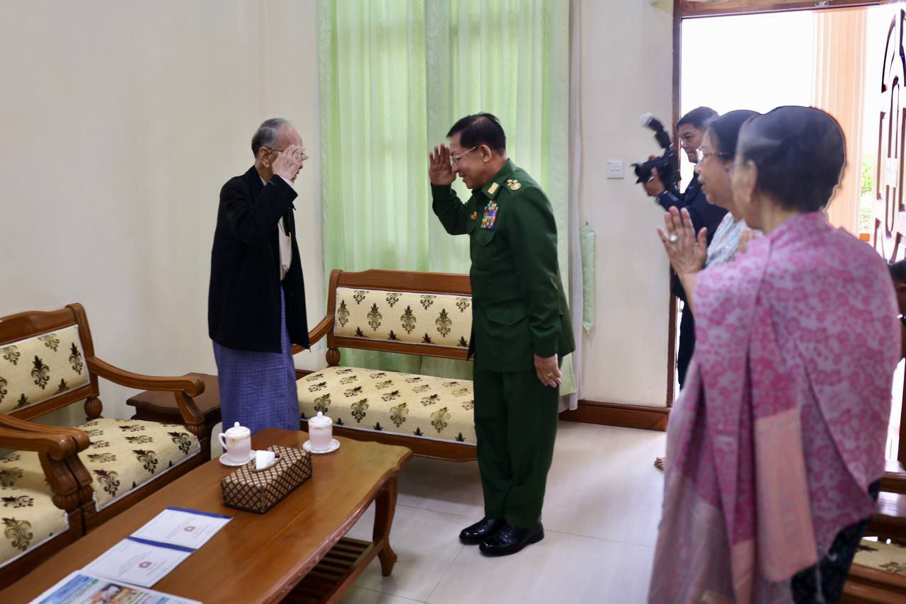 (၇၉)နှစ်မြောက် တပ်မတော်နေ့ အခမ်းအနားသို့ တက်ရောက် ကြမည့်အငြိမ်းစားတပ်မတော်အရာရှိကြီးများနှင့် ဇနီးများအား နစက ဉက္ကဋ္ဌ နှင့် ဇနီး သွားရောက်တွေ့ဆုံ ဂါရဝပြု