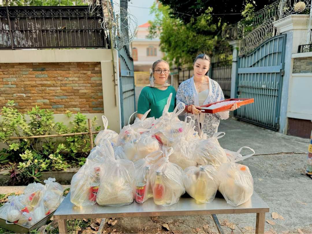 နှစ်သစ်မှာ ရှင် ၄၅ ပါးအတွက် ဆန်၊ဆီ၊ဆေး၊ဆားနှင့် နဝကမ္မ ကျပ် ၁၀၀၀၀ စီလောင်းလှူခဲ့တဲ့ ဖွေးဖွေး
