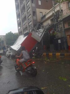 ၃။ လေပွေလှိင်းကြောင့် 230 KV ရွှေစာရံ -ဘဲလင်း ဓာတ်အားလိုင်း တိုင်ထိပ်ဖျား ကျိုးသဖြင့် ရန်ကုန်တွင် လျှပ်စစ်မီး ပြတ်တောက်