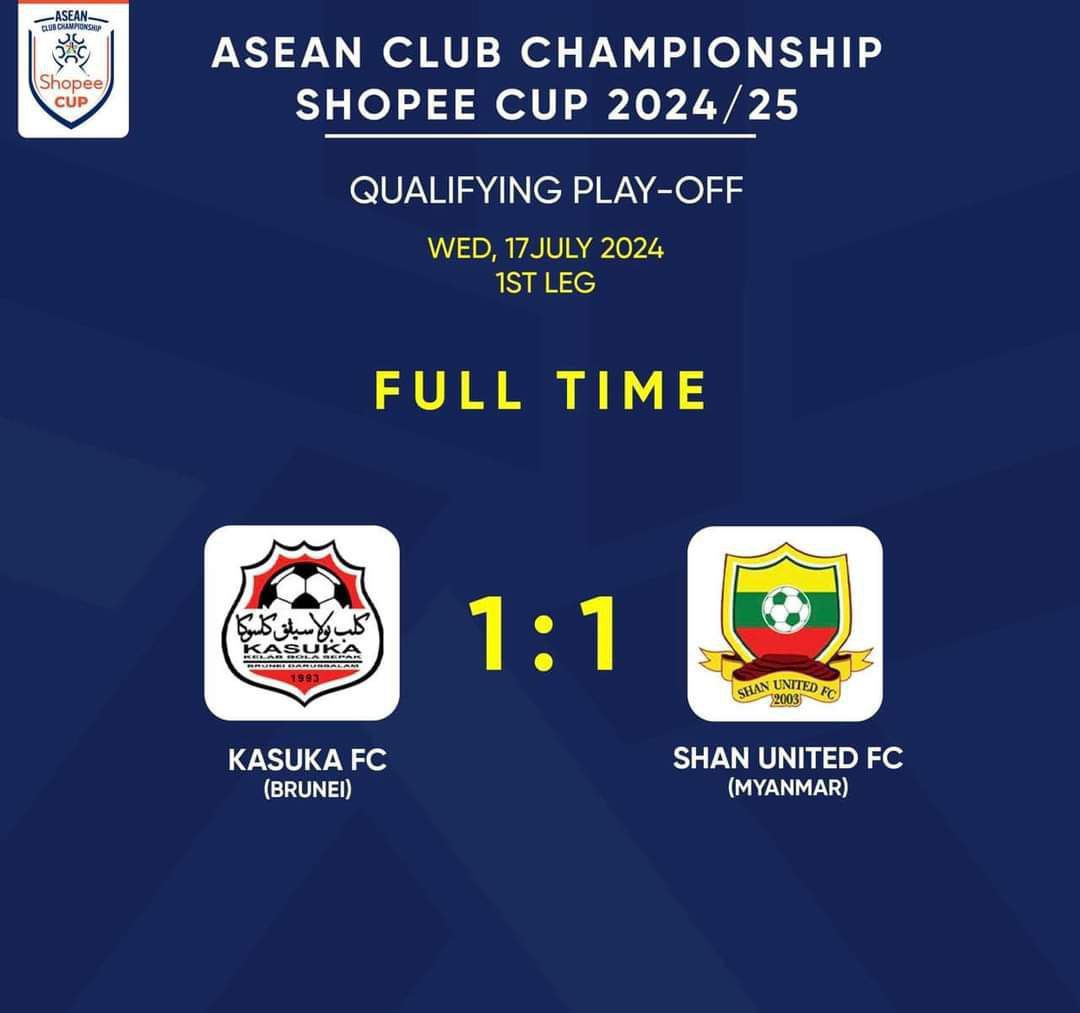 ၂၀၂၄-၂၅ ခုနှစ် အာဆီယံကလပ် ချန်ပီယံရှစ် ခြေစစ်ပွဲစဉ်တစ်ပွဲအား ယမန်နေ့ ဇူလိုင် (၁၇)ရက် ညပိုင်းက ဘရူနိုင်းကလပ် ကာဆူကာအသင်းနှင့်မြန်မာနေရှင်နယ်လိဂ်ကလပ် ရှမ်းယူနိုက်တက် အသင်းတို့ ကစားခဲ့ရာ တစ်ဖက် တစ်ဂိုးစီ ဖြင့် သရေရလဒ်ထွက်ပေါ်ခဲ့ပါတယ်။