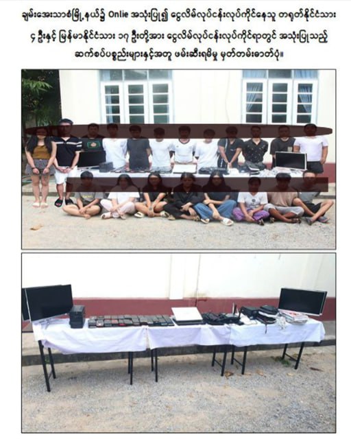 မန္တလေးတိုင်းဒေသကြီး ချမ်းအေးသာစံမြို့နယ်၌ Online အသုံးပြု၍ ငွေလိမ်လုပ်ငန်း လုပ်ကိုင်နေသူများအား ဖမ်းဆီးရမိ