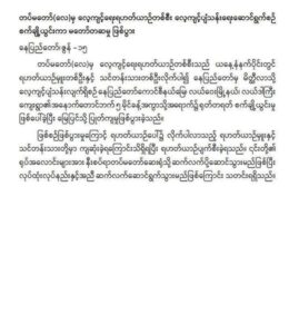 Next post တပ်မတော်(လေ)မှ လေ့ကျင့်ရေးရဟတ်ယာဉ်တစ်စီး လေ့ကျင့်ပျံသန်းရေးဆောင်ရွက်စဉ် စက်ချို့ယွင်းကာ မတော်တဆမှု ဖြစ်ပွား